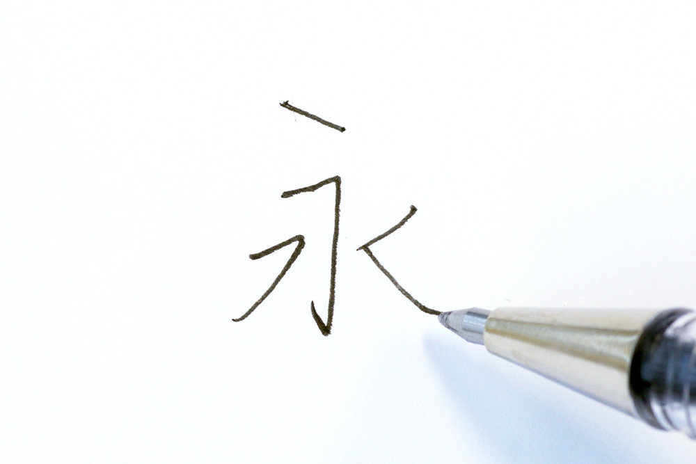 また、「ハイブリッド」は日本語特有のトメ、ハネ、ハライを表現しやすいペン先構造にもなっている。