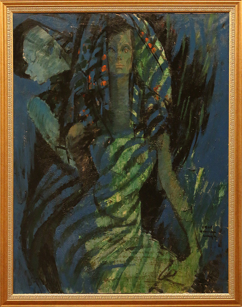 こうした油絵の作品の中にも宮永さんの多才ぶりはみてとれる。キュビズムを感じさせる抽象画的なものから写実的に描いたものなど色々な表現で描かれている。中でも『光と影の華麗なる世界と称される』「宮永美人画」という一つのジャンルを作り上げたスタイルはことに有名だ。