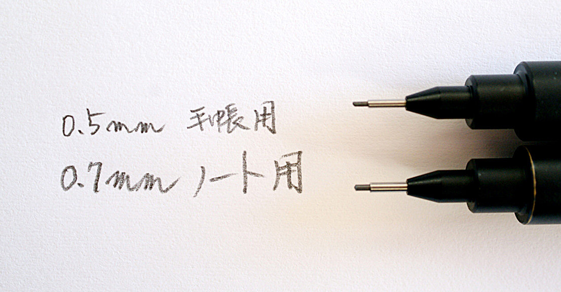 ノートにアイデアをメモするときは0.7mmと使い分けることができる。