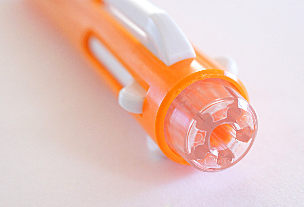 今回の「アイプラス」の企画担当者であるぺんてるマーケティング推進部の伊藤さんは、もともとデジタルペンの「エアペン」を担当していた。その関係で日ごろから家電量販店に足を運ぶ機会が多く、イヤホンジャックの種類の多さに目をとめていた。それがヒントとなって、今回のノックボタンに穴を設けるというアイデアへとつながっていった。