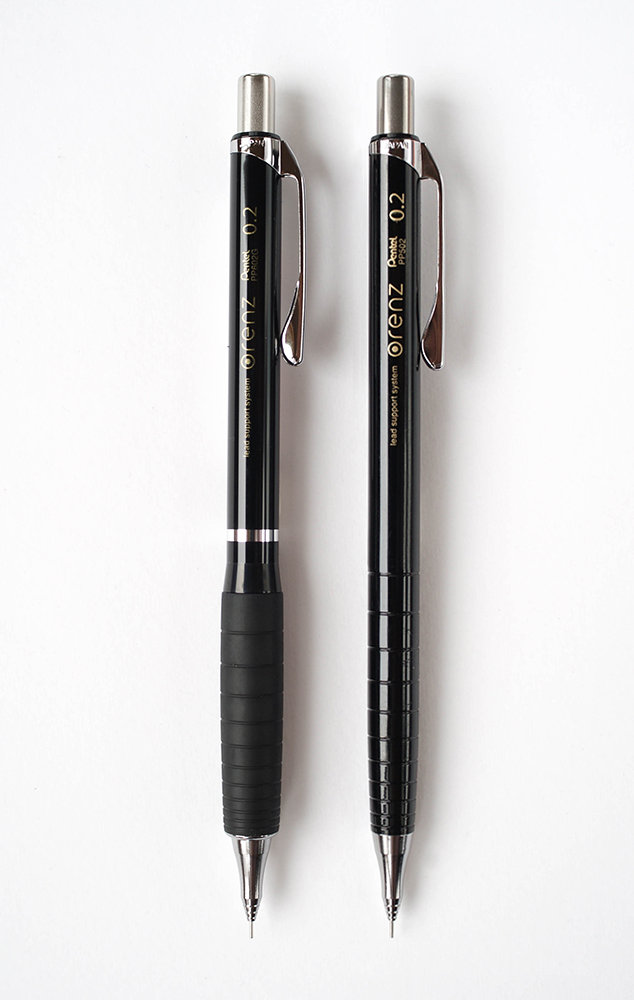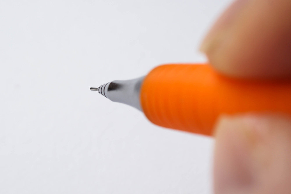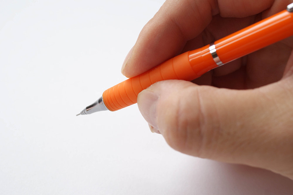 0.2mm、0.3mmという超極細芯でも折れることを気にせず、いつものように書くことができる「オレンズ」。