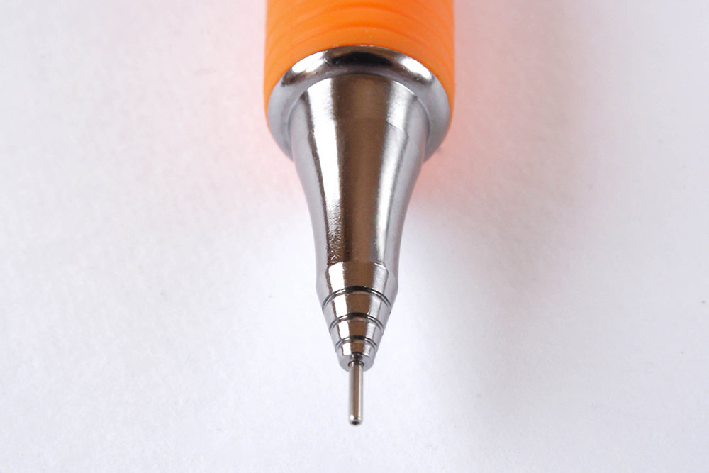 0.2mm、0.3mmの超極細芯で書く時に気になることと言えば、ペン先まわりの視界だ。その視界を左右するのがペン先のデザインである。
