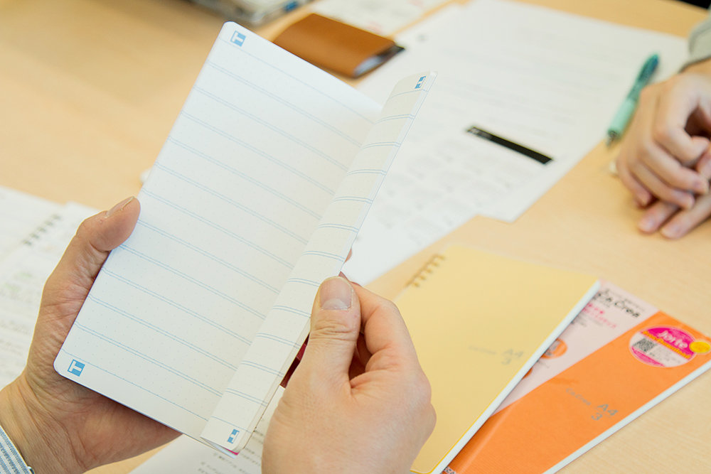 田島「ぺんてるでは、すでに『アンキスナップ』を販売し、この分野での確かな手応えを感じていました。同じようにデジタルを融合した単語帳も出したいとかねてより考えていました。しかし、ぺんてるは筆記具メーカーのため、紙製品についての知識が少なく困っていました。そうした中、プラスさんの『カ.クリエ』という絶妙なサイズのノートに注目したんです。これで単語帳が出来たら面白いのではと考え、プラスさんにお声がけさせていただきました。」