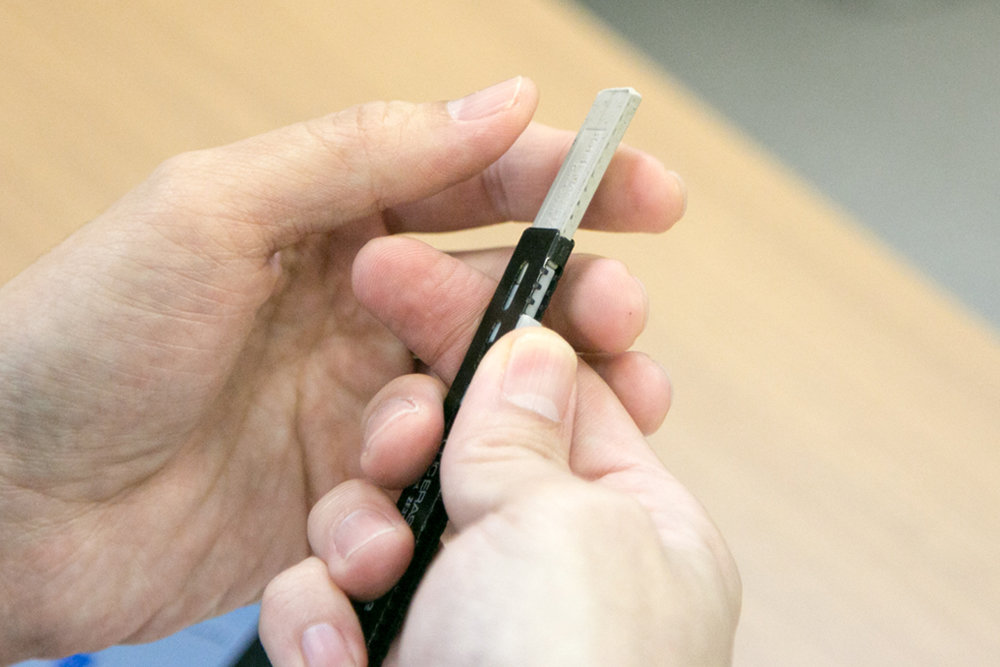 「スリムなので縦にして使えば少しだけ消せますし、寝かせれば広い面も消すことができます。強くゴシゴシこすっても消しゴムは引っ込んだりしません。中でも消しゴムの固定方法にとても驚きました。ちょうどジグソーパズルのようにピタリとかみ合わせてあるんです。これを考えた人は天才だ!と思いました。」