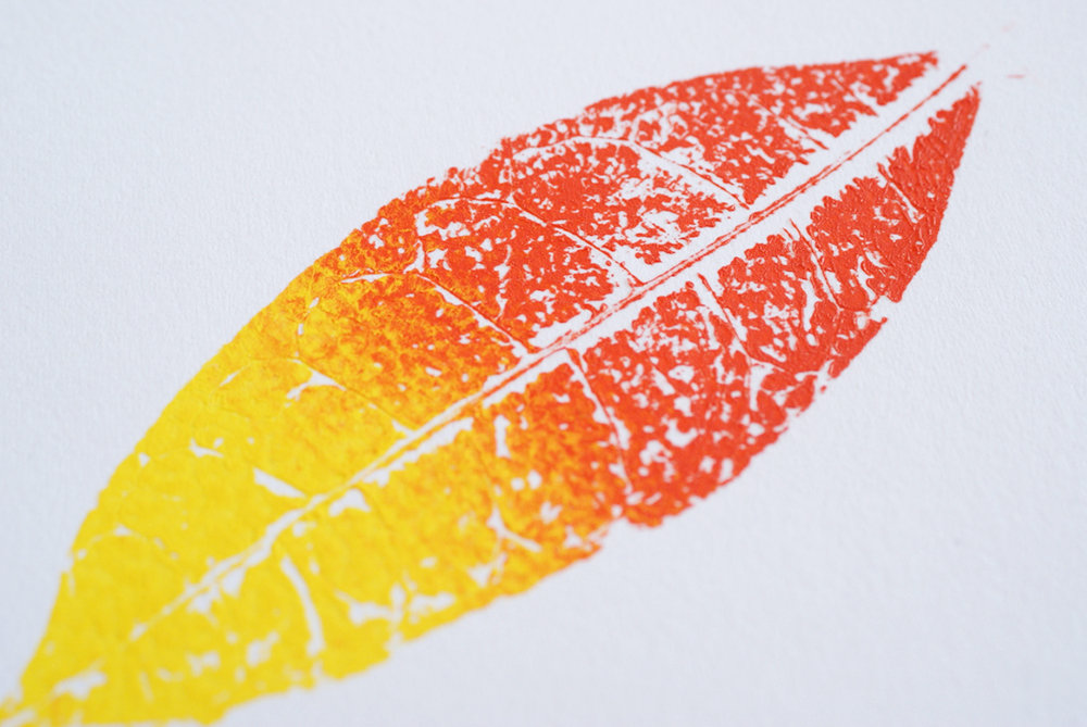 これは葉っぱに色を塗り、それをスタンプのようにして紙に写したもの